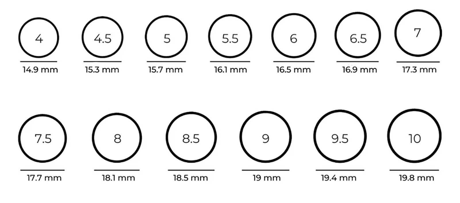 2. Mide el diámetro interior del anillo (de borde interno a borde interno) en milímetros.