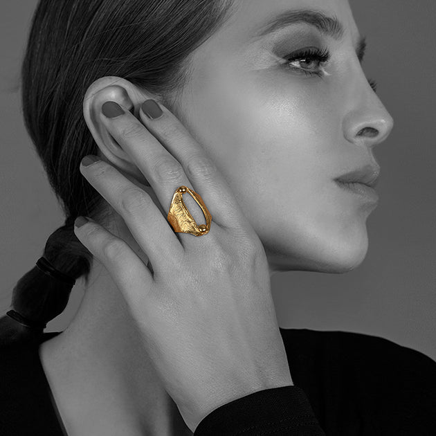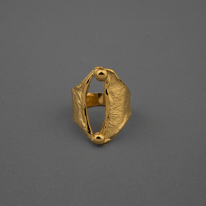 Variante Baño de Oro 24K: Anillo de plata 925 con baño de oro de 24K, de diseño contemporáneo.