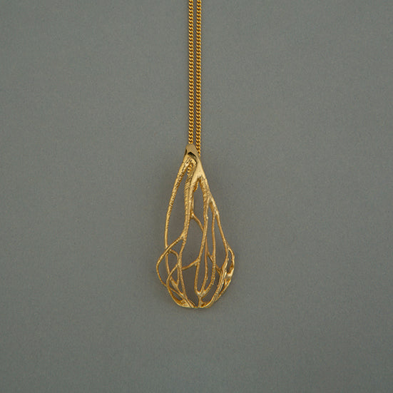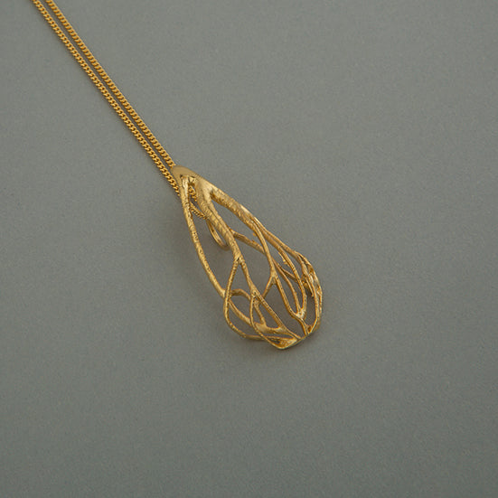 Collar de plata 925 y baño de oro de 24 quilates, de diseño contemporáneo. Elaborado a mano por artesanos mexicanos. (incluye cadena)