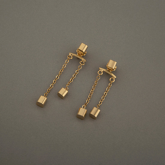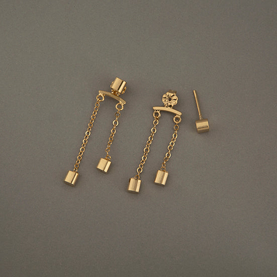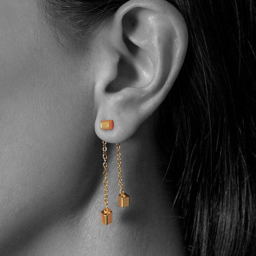 Aretes de plata 925 con baño de oro de 24 quilates, de diseño contemporáneo. Elaborado a mano por artesanos mexicanos.