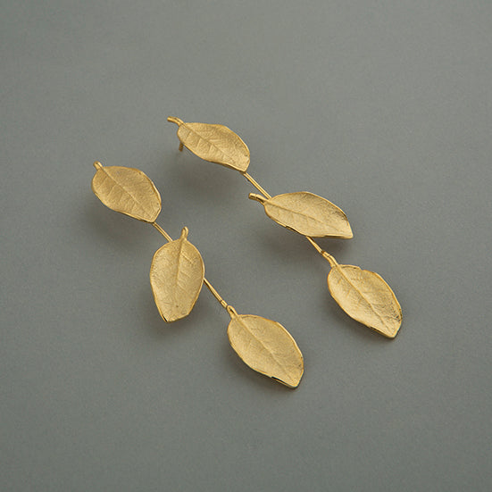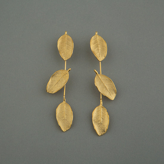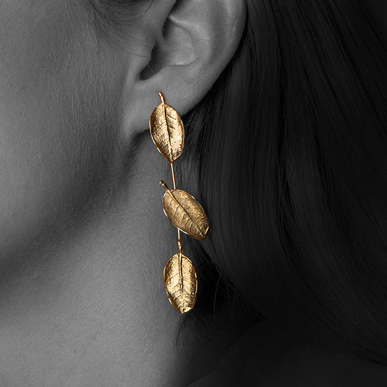 Aretes de plata 925 y baño de oro de 24 quilates, de diseño contemporáneo, elaborados a mano por artesanos mexicanos.