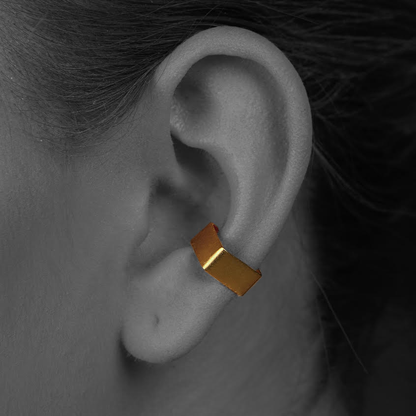 Arete trepador de plata 925 y baño de oro de 24 quilates. Diseño vanguardista. Elaborado a mano. (una sola pieza).