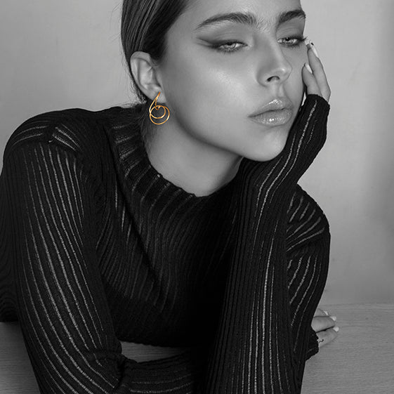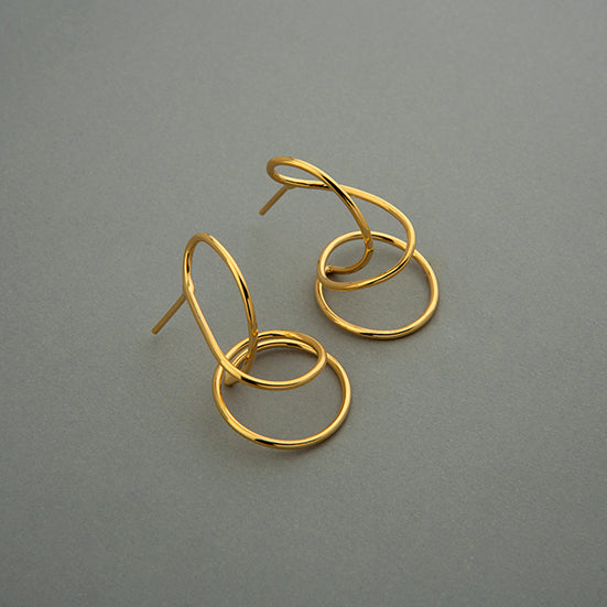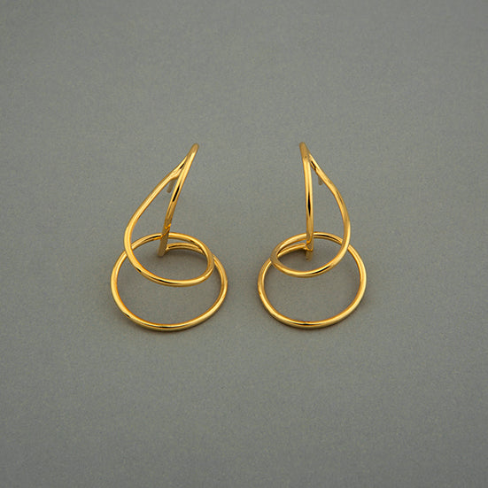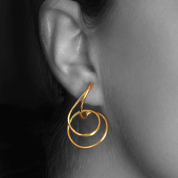 Aretes de plata 925 y baño de oro de 24 quilates, de diseño contemporáneo, elaborados a mano por artesanos mexicanos.