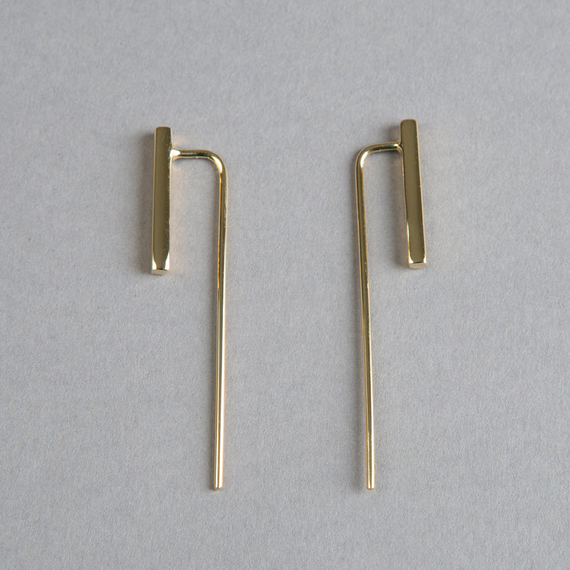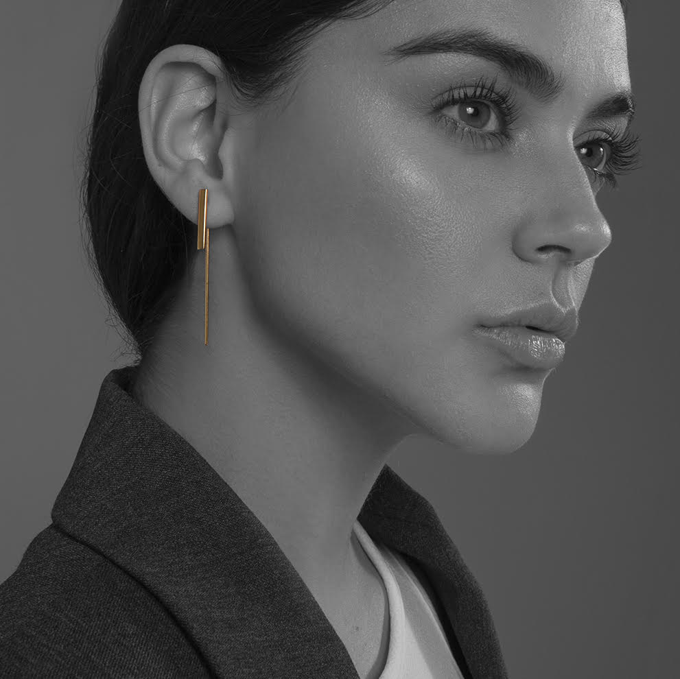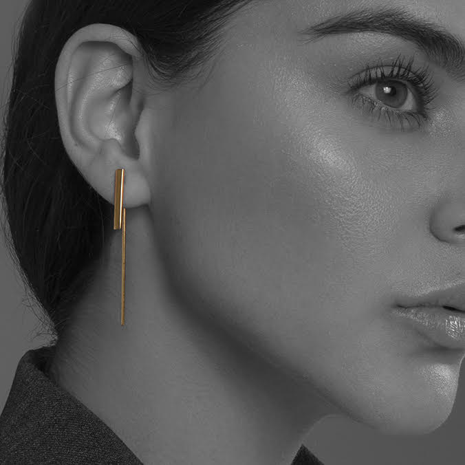 Aretes de plata 925 con baño de oro de 24K, de diseño contemporáneo. Elaborados a mano por artesanos mexicanos.