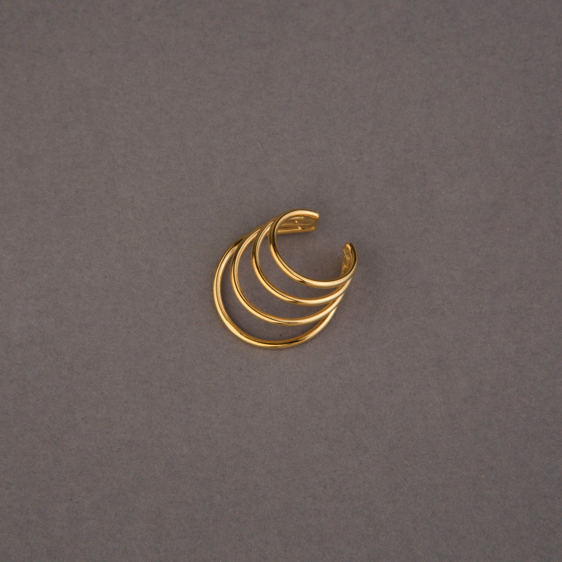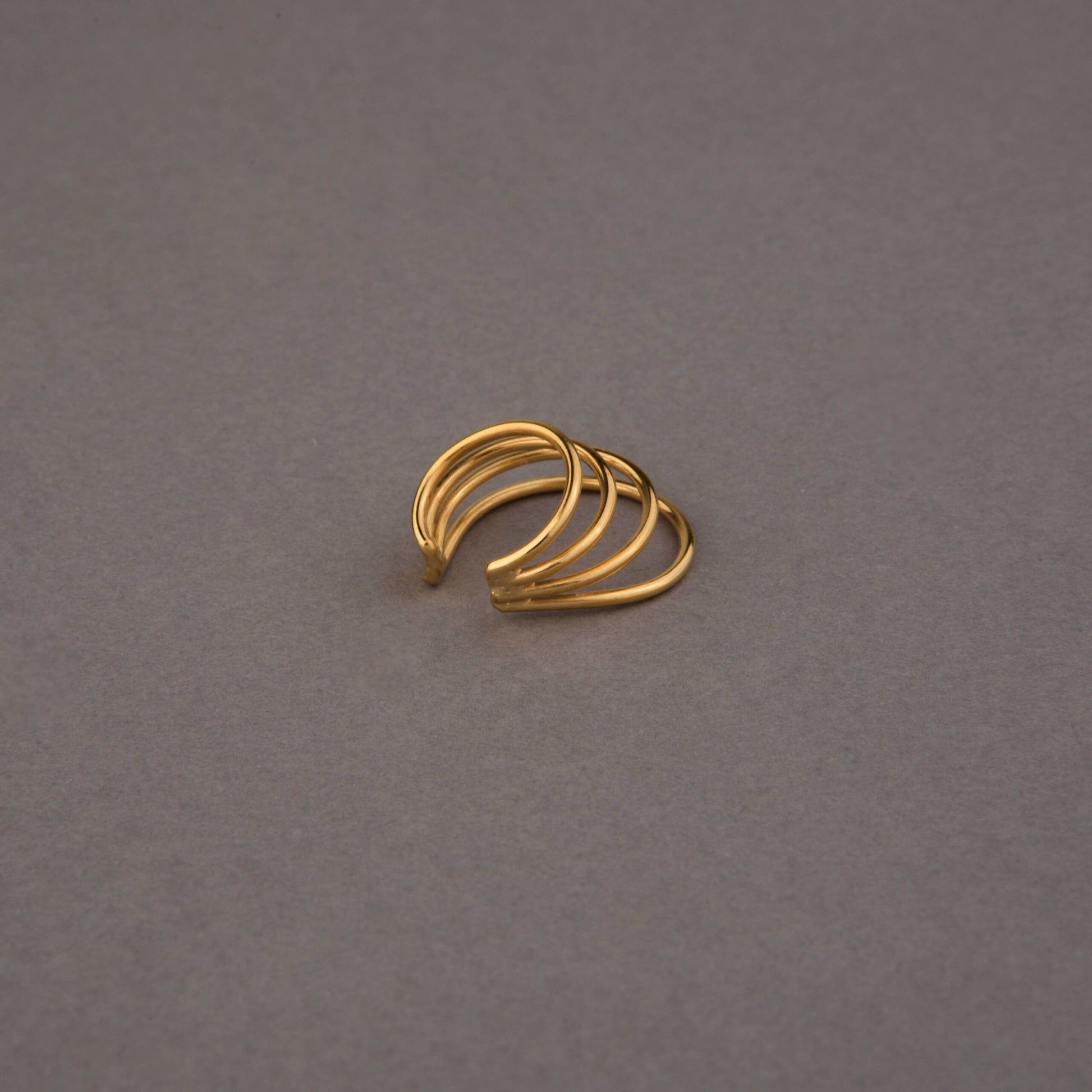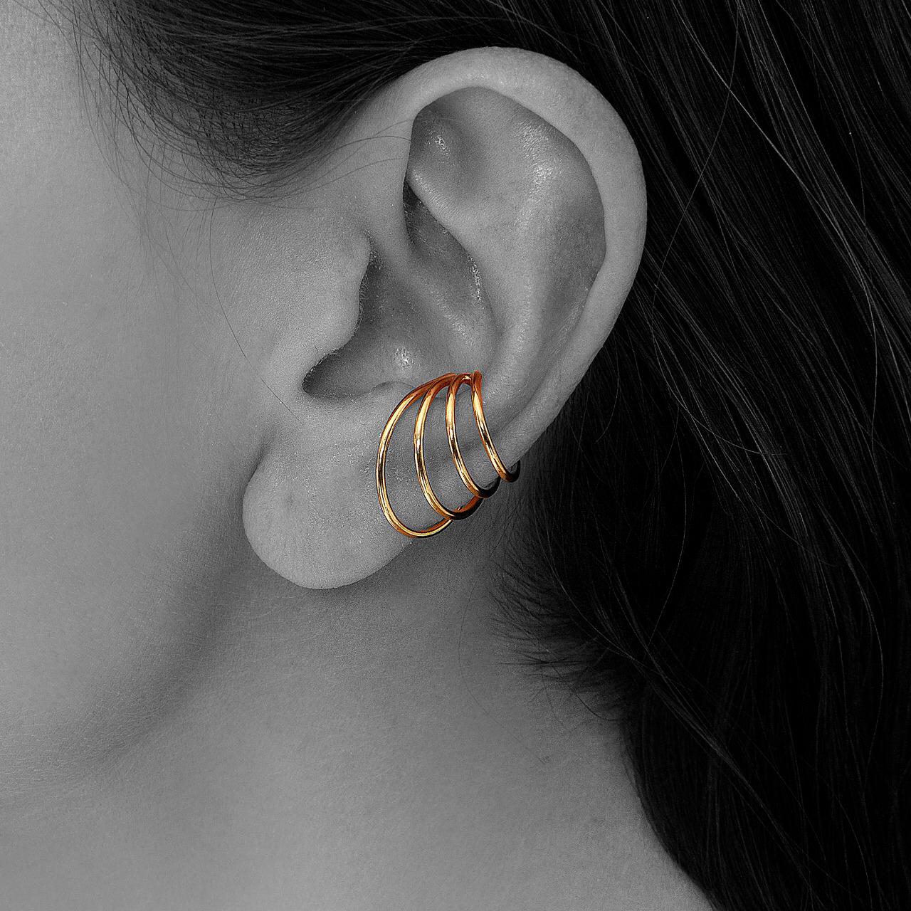 Arete trepador de plata 925 y baño de oro de 24k. Diseño vanguardista. Elaborado a mano. (una sola pieza).