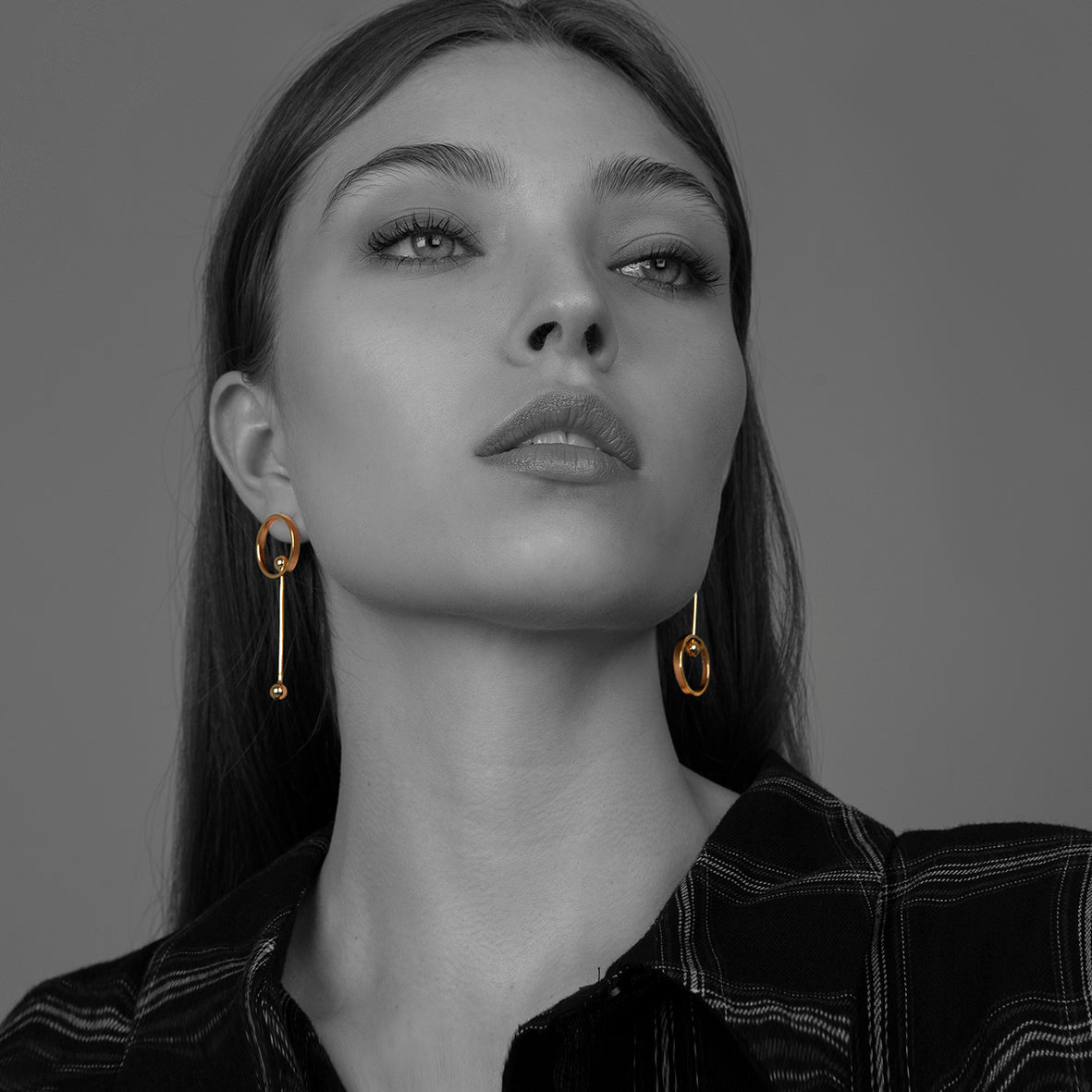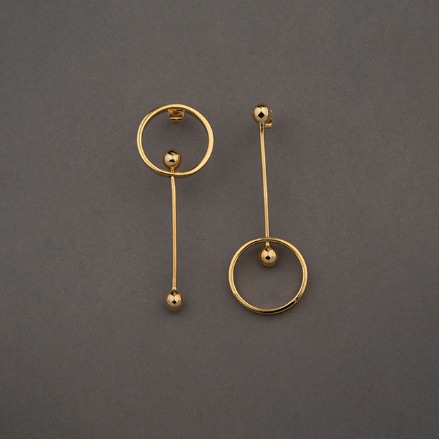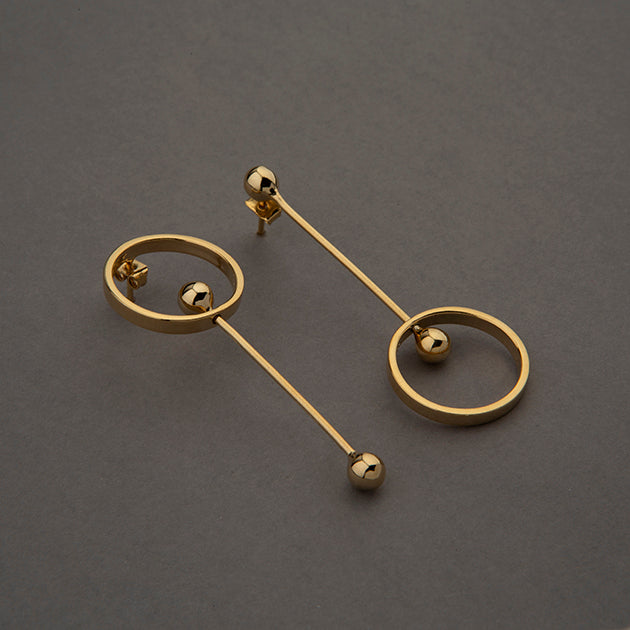 Aretes de plata 925 y exquisito baño de oro de 24 quilates, de diseño contemporáneo. Elaborados a mano por artesanos mexicanos.