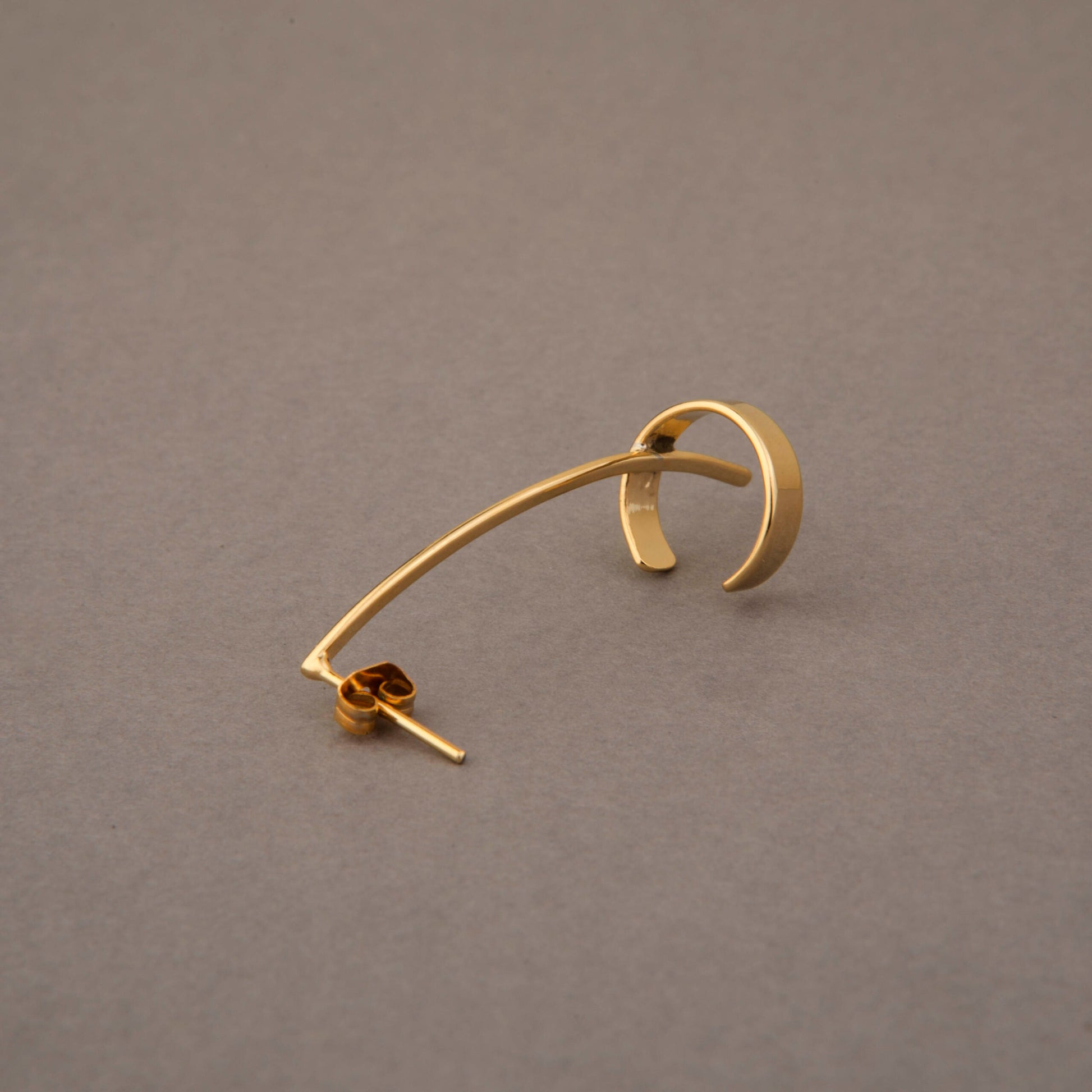 Arete de plata 925 y baño de oro de 24k. Estilo trepador.