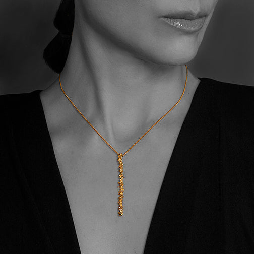 "El collar Estalactita refleja la majestuosidad de la naturaleza, con un diseño que evoca la formación única de las estalactitas, aportando un toque de sofisticación y misterio."