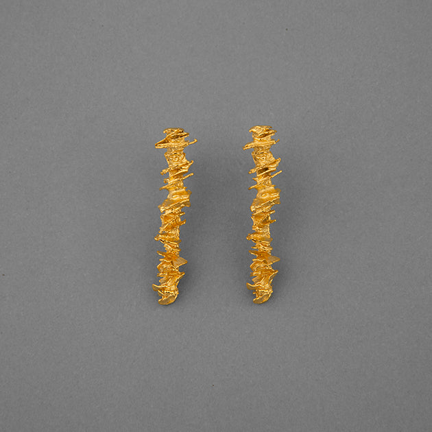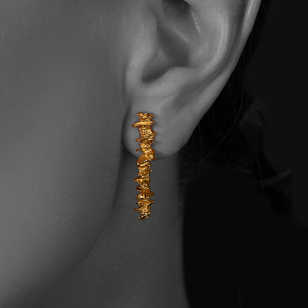 \n"Estos aretes, inspirados en las estalactitas, reflejan la belleza esculpida por el tiempo, fusionando elegancia y naturaleza en un diseño único y sofisticado."