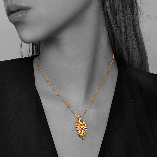 Variante Baño de Oro 24K: Collar de plata 925 con baño de oro de 24K, de diseño contemporáneo.