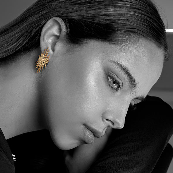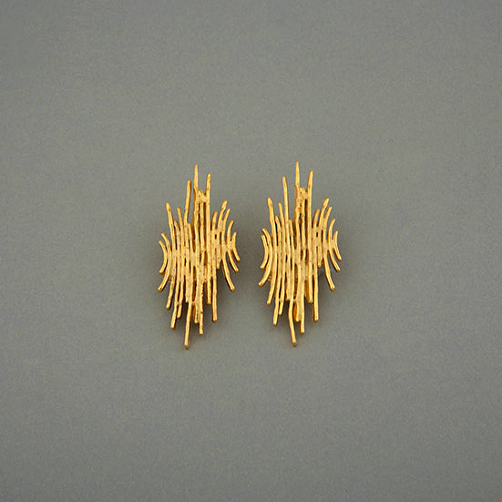 Aretes de plata 925 y baño de oro de 24 quilates, de diseño contemporáneo, elaborados a mano por artesanos mexicanos.
