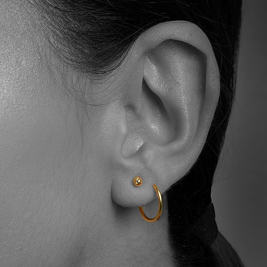 Aretes de plata 925 y baño de oro de 24 quilates. Diseño vanguardista, crea un efecto multipiercing sin necesidad de perforaciones. Elaborado a mano.