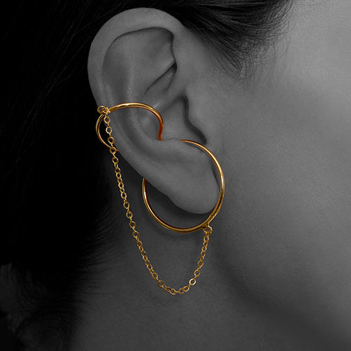 Arete trepador de plata .925 y baño de oro de 24k. Diseño vanguardista. Elaborado a mano. (una sola pieza).