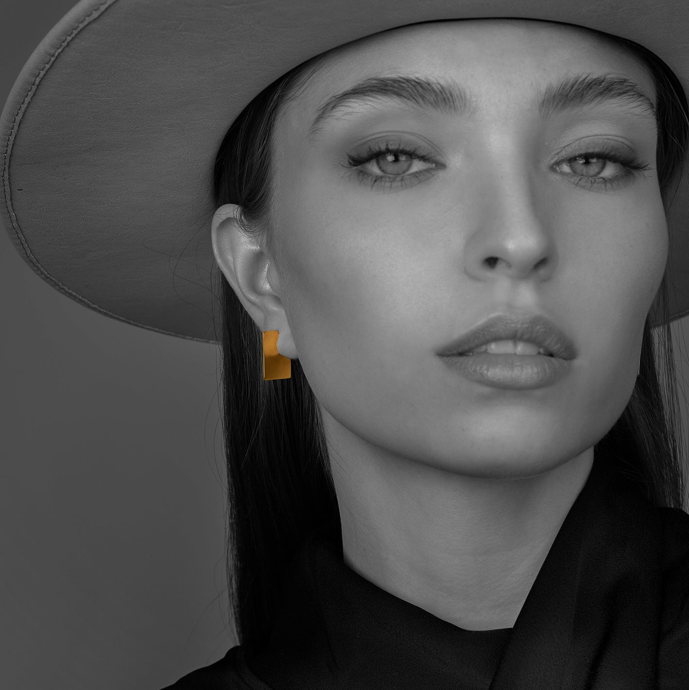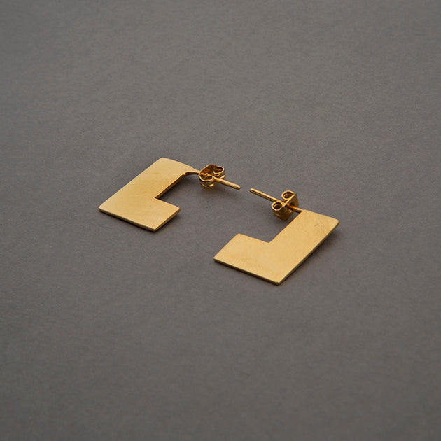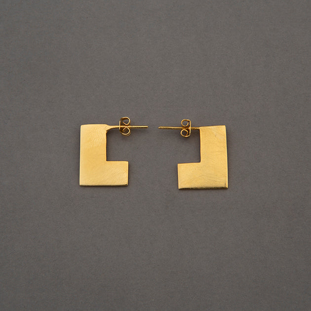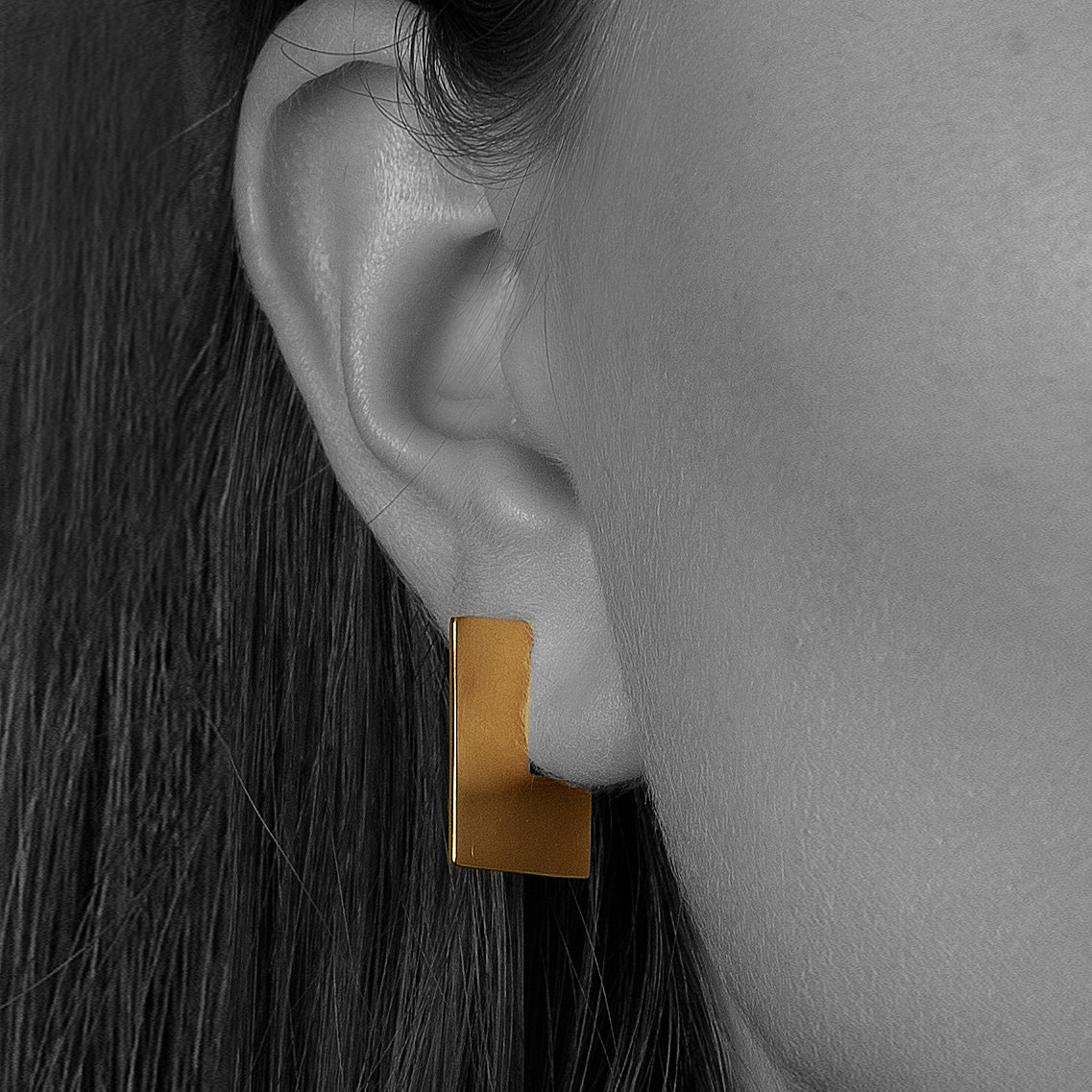 Arete tipo broquel de plata 925 y baño de oro de 24 quilates. Diseño moderno y minimalista. Elaborados a mano por artesanos mexicanos.