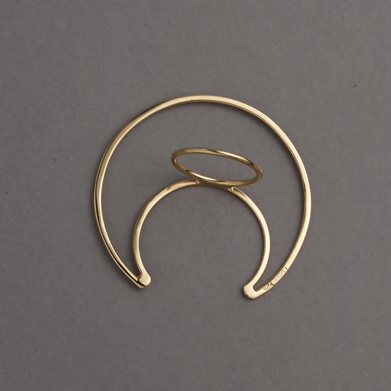 Variante Baño de Oro 24K: Anillo de plata 925 con baño de oro de 24K, de diseño contemporáneo.