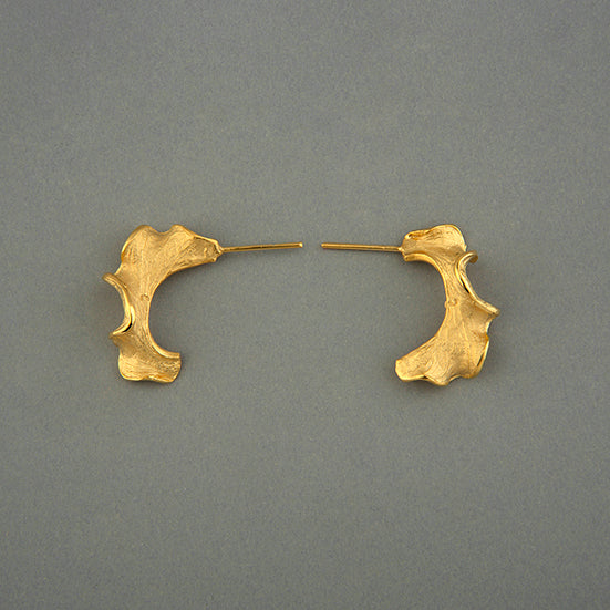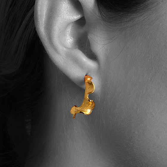 Aretes de plata 925 y baño de oro de 24 quilates, de diseño contemporáneo, elaborados a mano por artesanos mexicanos.