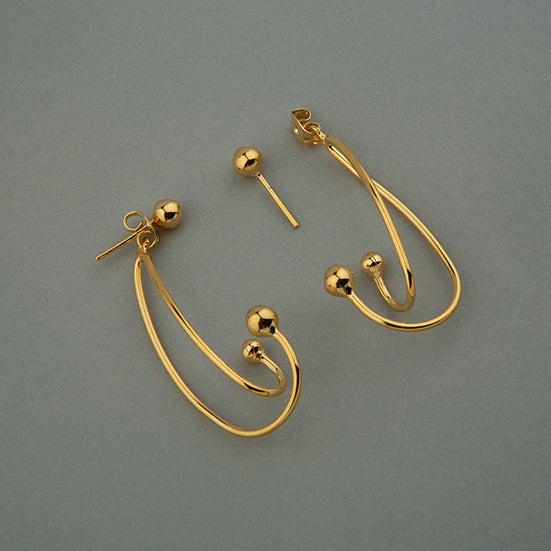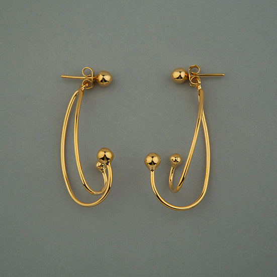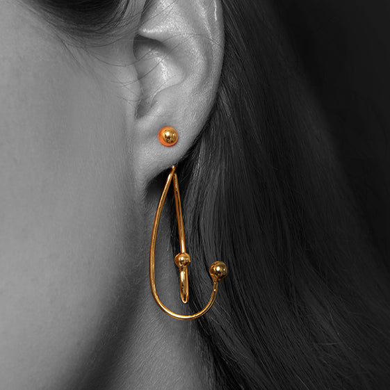 Aretes de plata 925 y baño de oro de 24 quilates, de diseño contemporáneo, elaborados a mano por artesanos mexicanos.