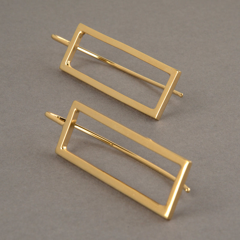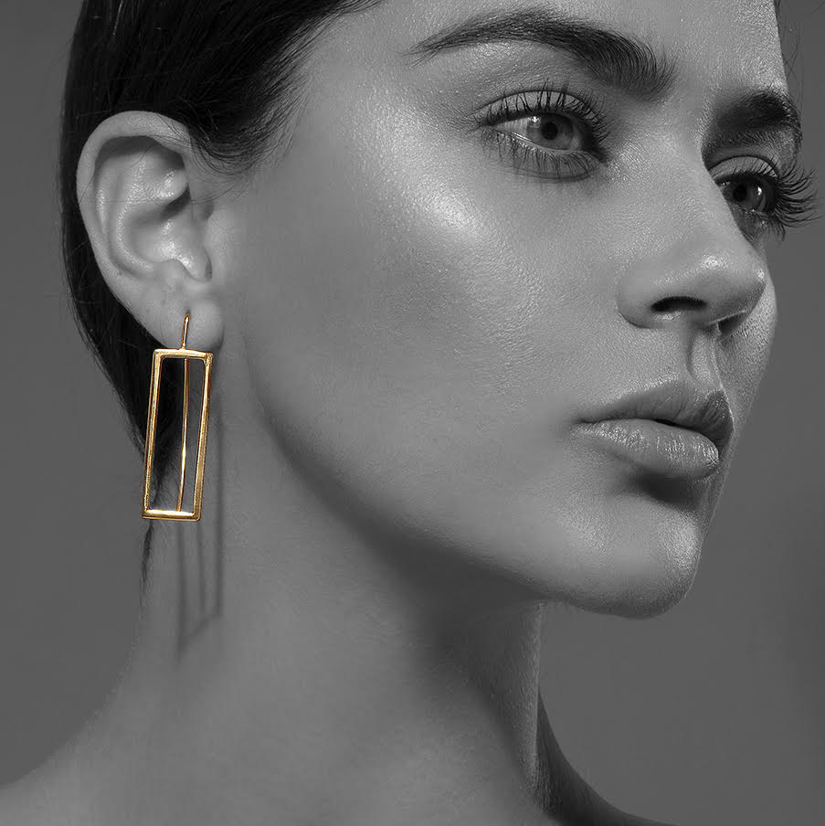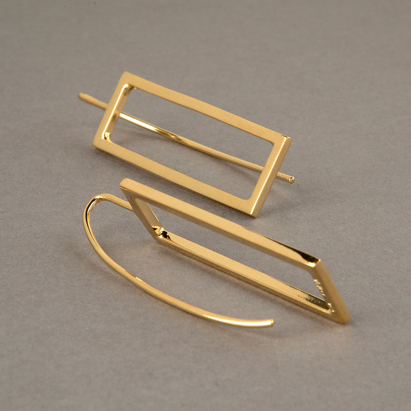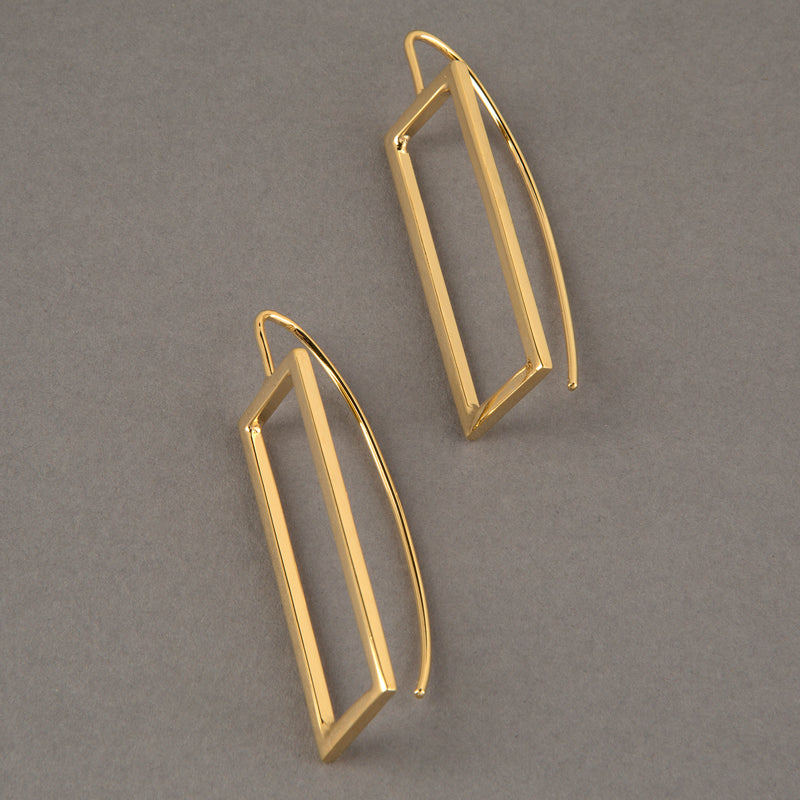 Aretes de plata 925 con baño de oro de 24K, de diseño contemporáneo. Elaborado a mano por artesanos mexicanos.