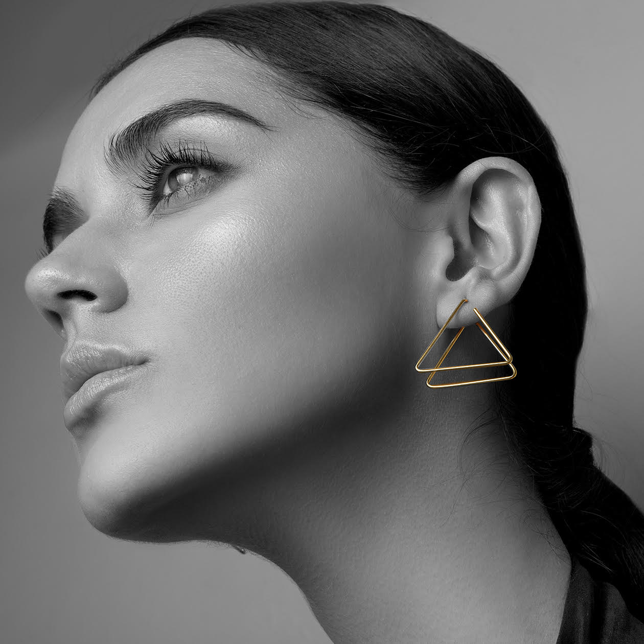 Aretes de plata 925 con baño de oro de 24K, de diseño contemporáneo. Elaborados a mano por artesanos mexicanos.