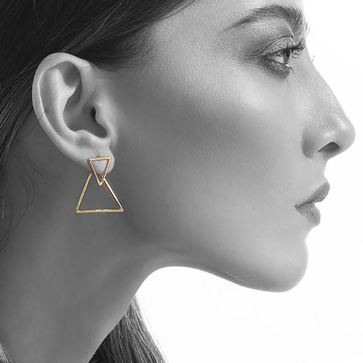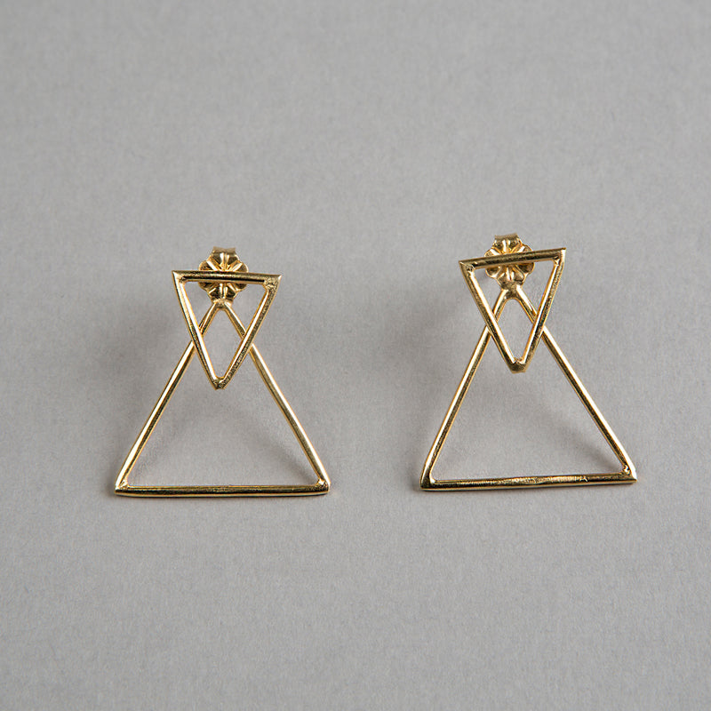 Arete de plata 925 y plata con baño de oro de 24k. Diseño vanguardista. Elaborado a mano.