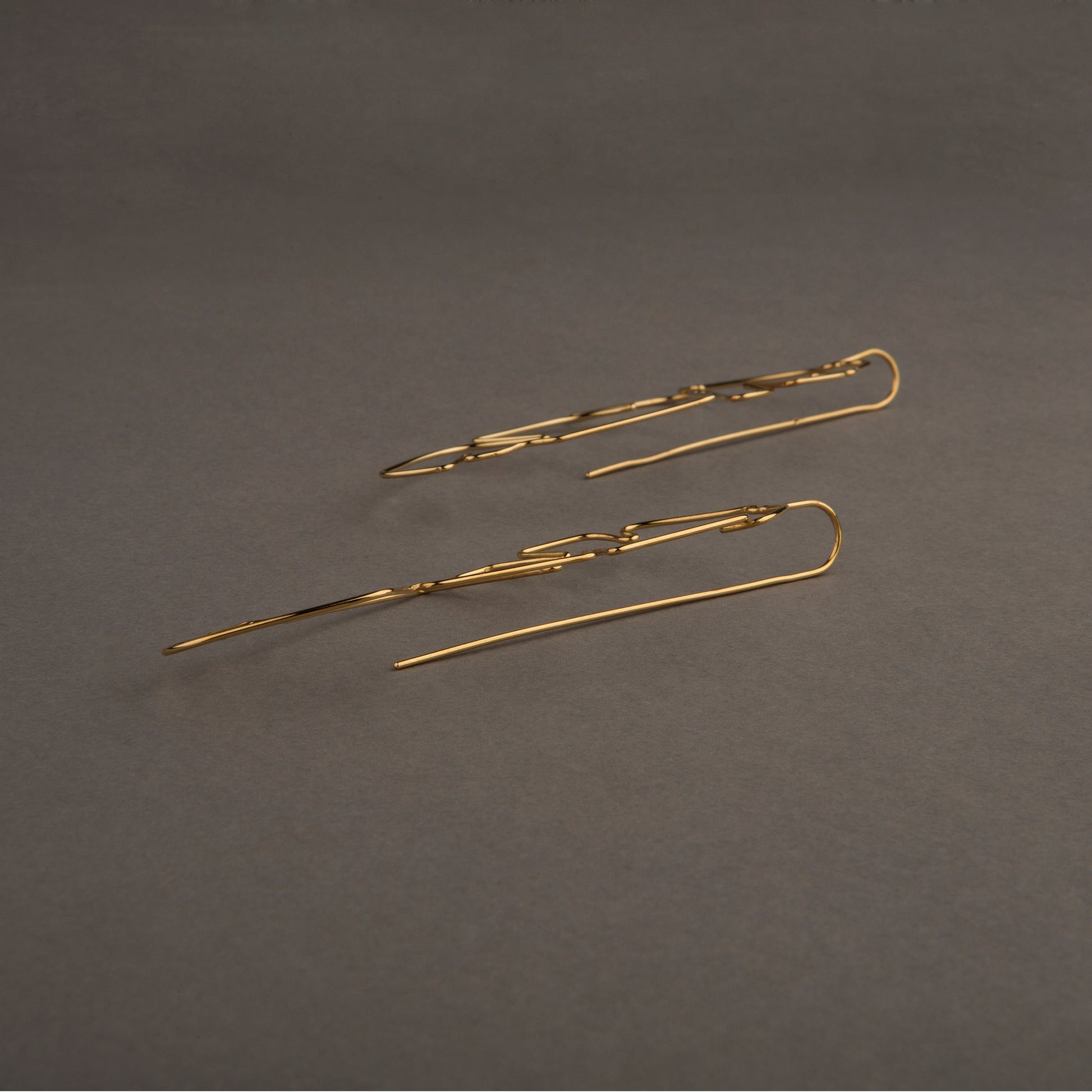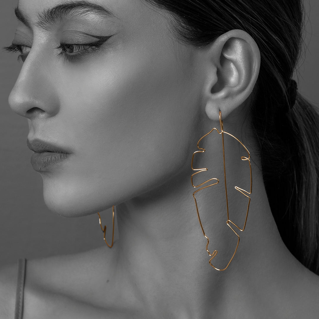Aretes elaborados a mano de plata 925 y baño de oro de 24k, con diseño original y moderno.